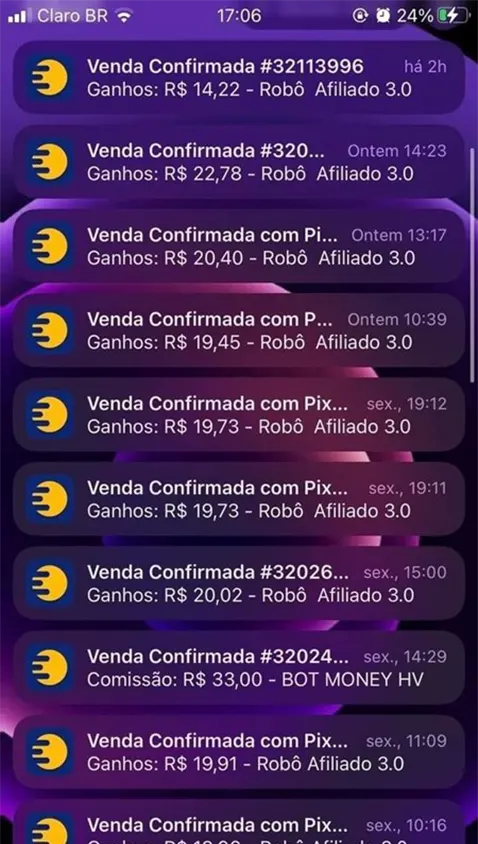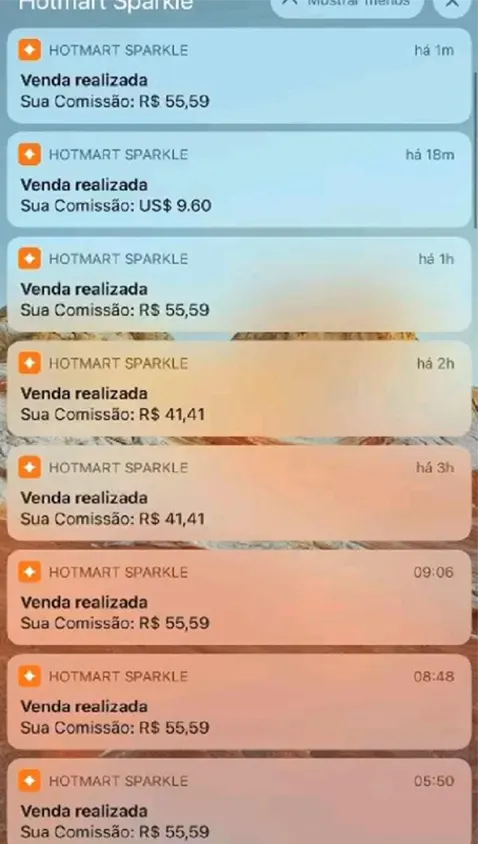Eles te mostram prints falsos (feitos em apps específicos) de notificações de vendas aos montes pra você acreditar que vai conseguir ficar milionário em questão de meses com qualquer produto na hotmart, eduzz, monetizze e etc.